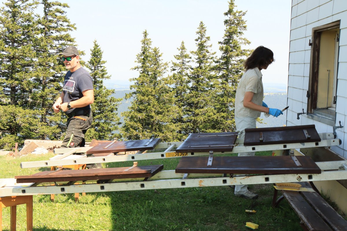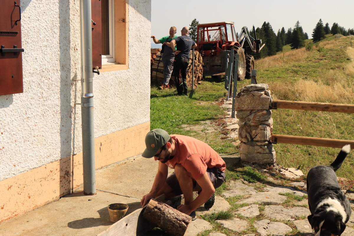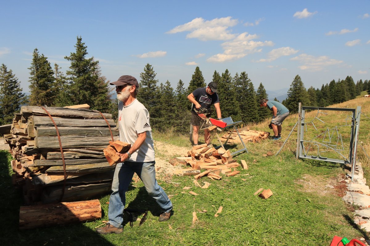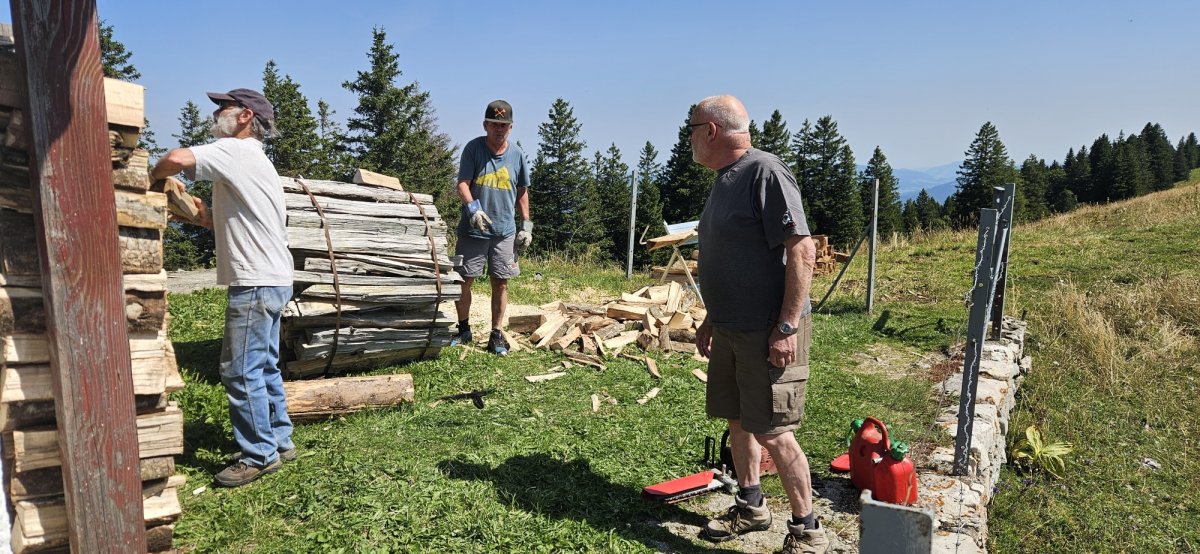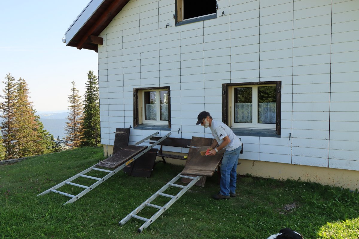 Temps magnifique pour cette corvée du 9 août. Monté et coupé 3 stères de bois, lasure sur les volets de la façade ouest, réparation dalles en béton, nettoyage