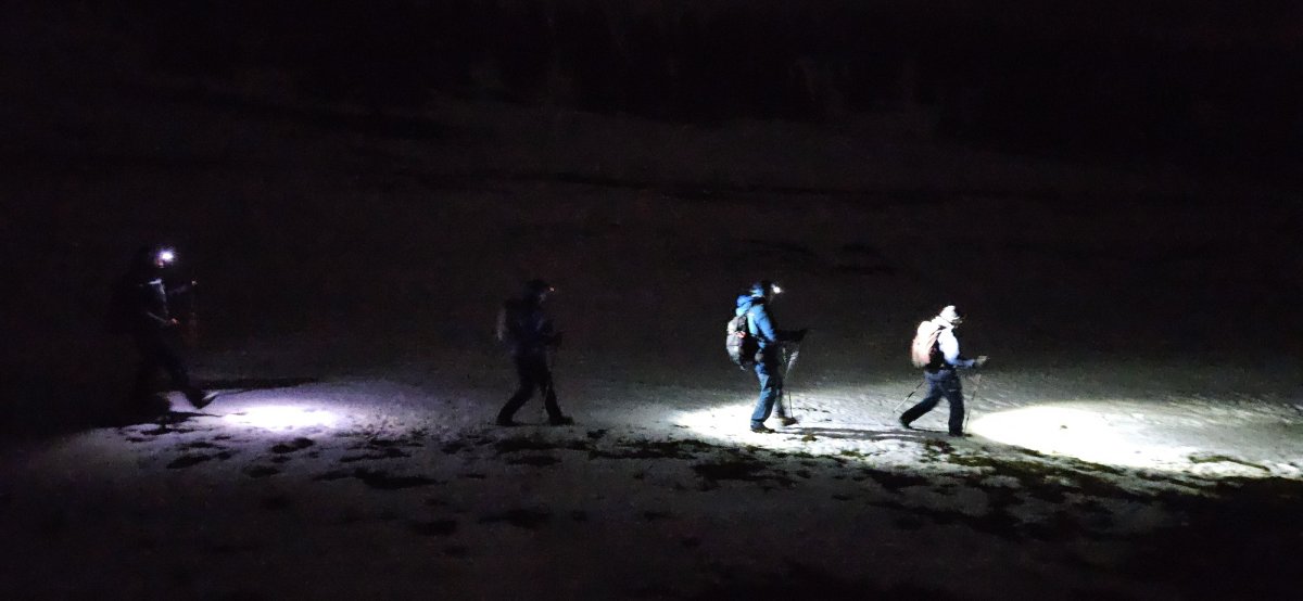 Il était passé minuit lorsque nous avons repris le chemin du retour, cette fois sous une pluie légère qui contrastait avec la neige épaisse du début de soirée. Une descente pleine de discussions, de souvenirs déjà partagés et de sourires complices.