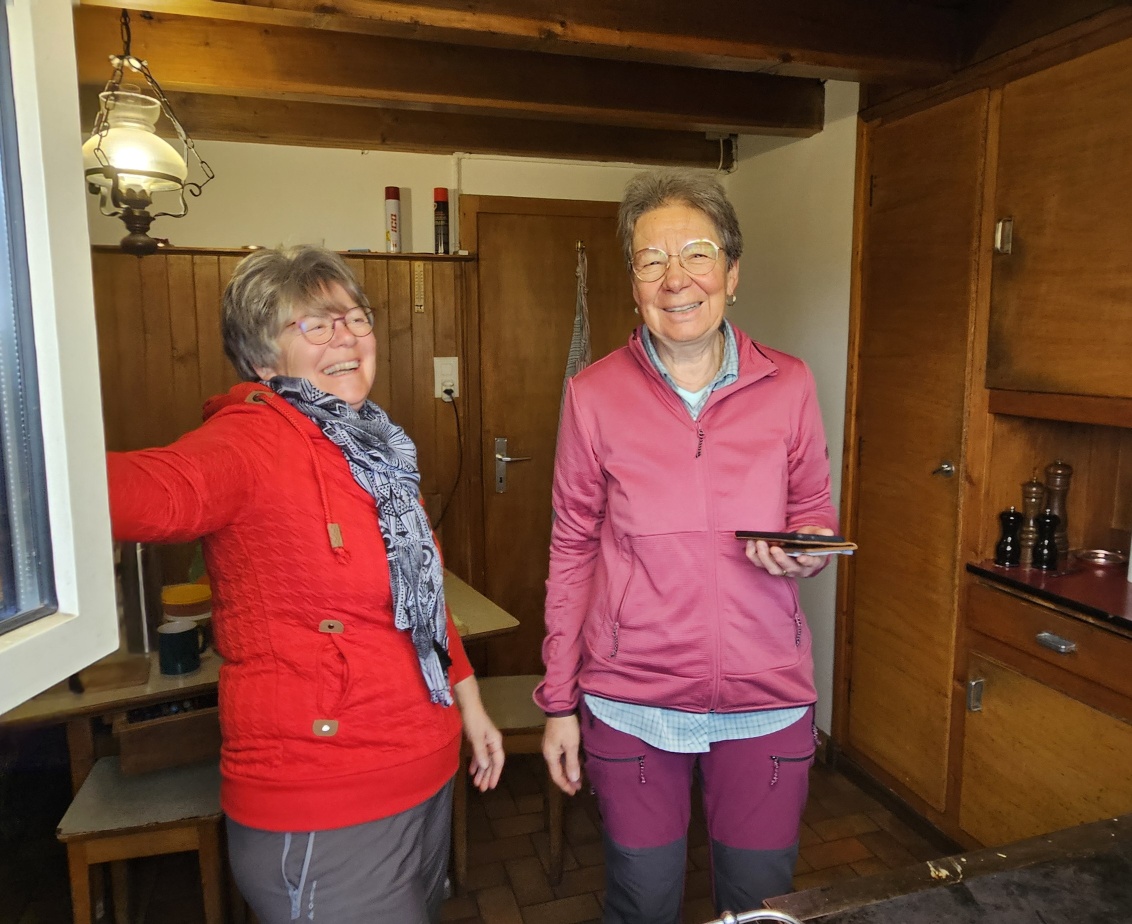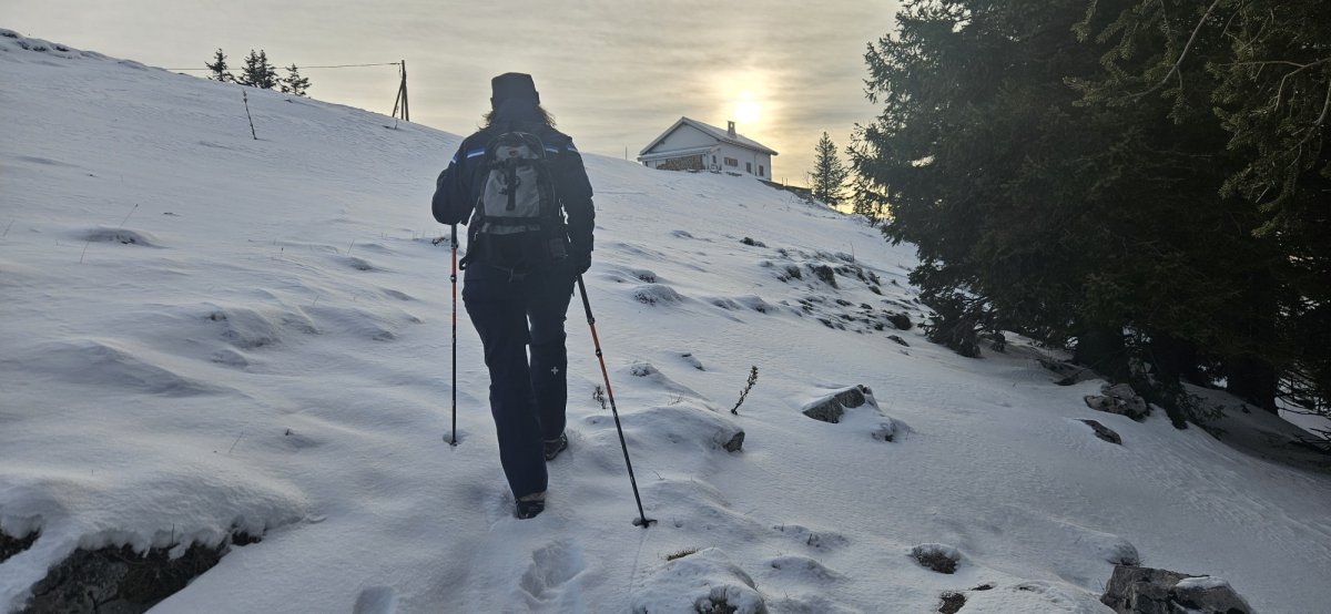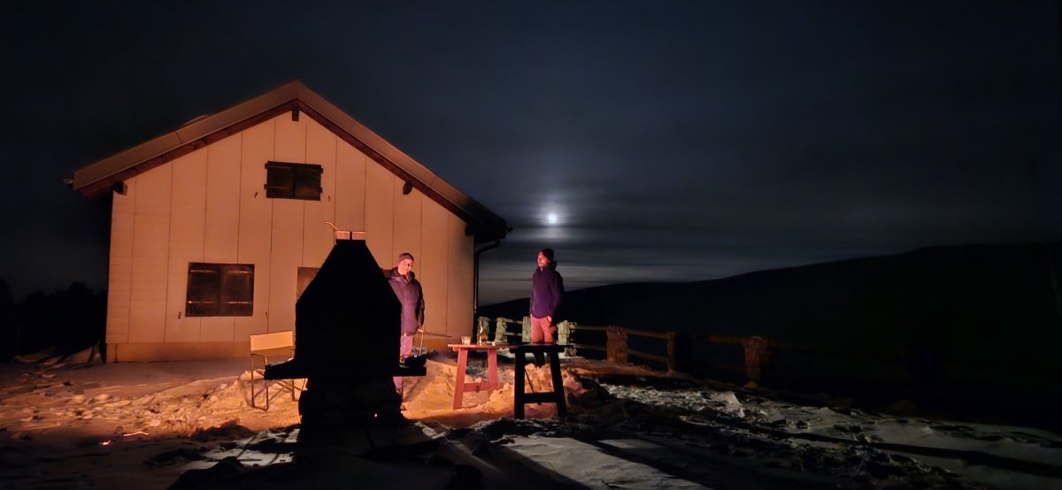 Soirée Pleine Lune au Hubel. Nous avons vécu une expérience unique au sommet. L'ascension s'est faite dans une ambiance conviviale, certains ont opté pour les peaux de phoque, tandis que d'autres ont préféré la montée à pied, sous une neige légère mais présente. Une fois arrivés au sommet, nous avons savouré un délicieux souper fondue, parfait pour réchauffer nos cœurs et nos corps. Les jeunes, eux, ont choisi un souper grillades, mais pas avant de déneiger la cheminée extérieure, ce qui a ajouté un petit défi à cette aventure. La soirée s'est poursuivie sous un ciel qui nous a offert une pleine lune légèrement voilée, mais toujours suffisamment éclatante pour éclairer nos pas. Un vent plus chaud est venu adoucir l'atmosphère, permettant à certains de redescendre vers la vallée, bercés par une température agréable. D'autres ont préféré prolonger l'expérience et passer la nuit au chalet, dans une ambiance chaleureuse et conviviale. Un moment inoubliable, au rythme de la nature et des étoiles.