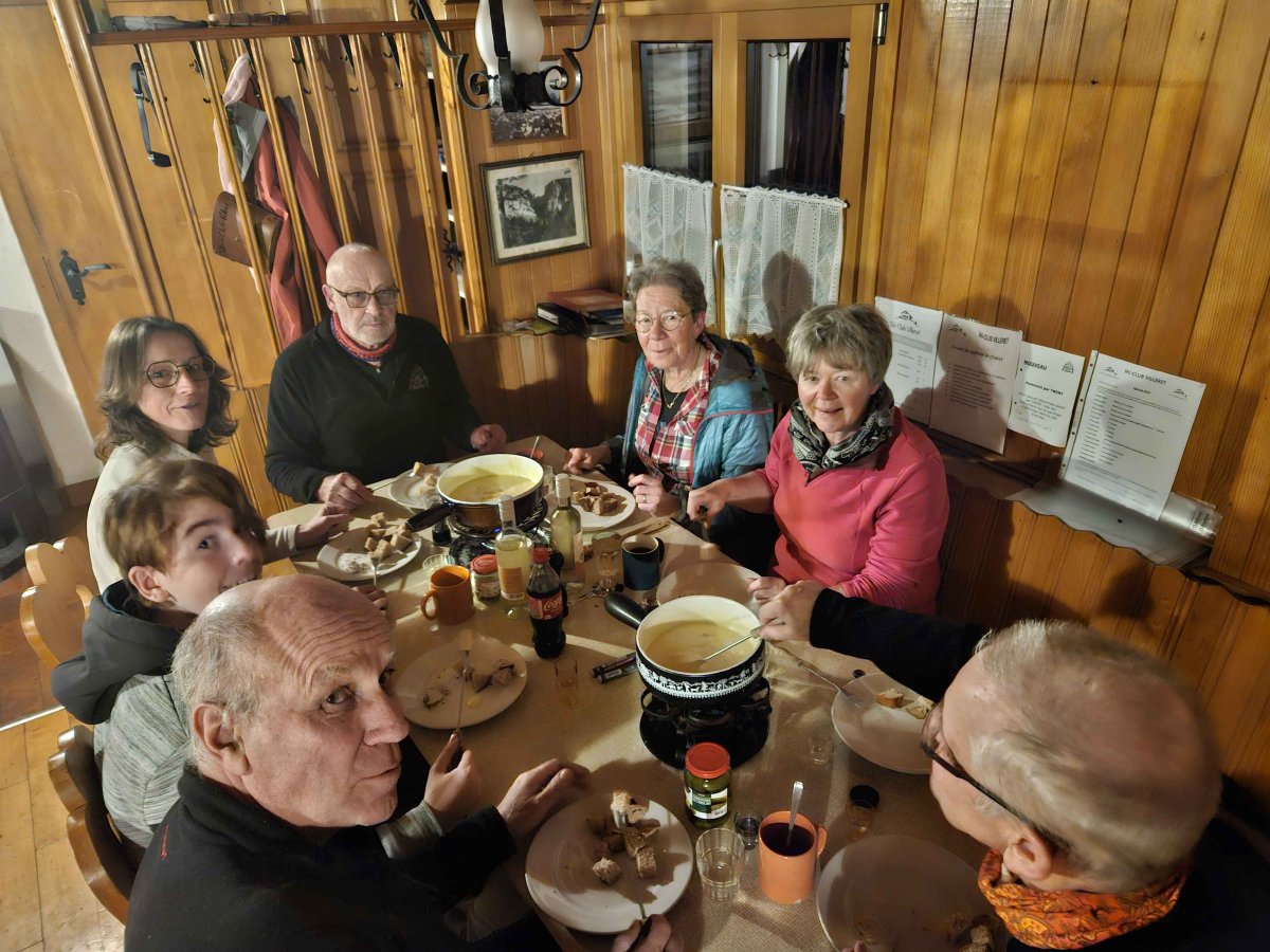 Magnifique soirée avec un temps d'hiver (enfin). 8 personnes présentes. De magnifiques paysages et un souper fondue excellent.